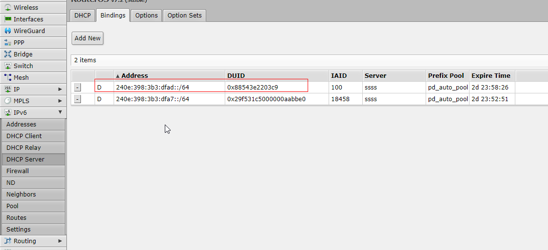 注意:我实测有状态从ros拿地址拿不到,不清楚原因。看了mikrotik的wiki,没找到有状态配置的相关信息,直接不支持有状态获取地址了?